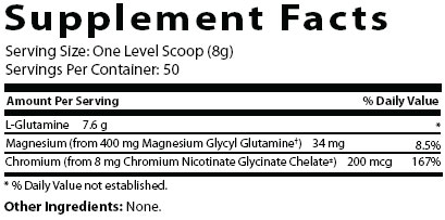 - Contains L-glutamine peptide and a patented, stable form of L-glutamine from Albion that has been demonstrated to elevate the body’s glutamine levels. These levels remain elevated for 90 minutes after consuming it.